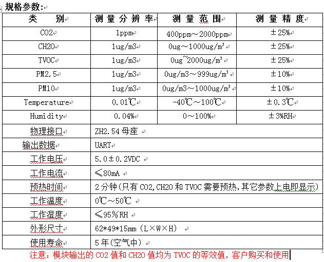 產品名稱: 七合一空氣質量檢測模塊