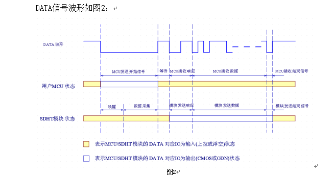 數(shù)據(jù)格式: 4bit濕度十位+4bit濕度個位+4bit溫度符號(最高bit為符號位)+4bit溫度十位+4bit溫度個位+4bit溫度十分位+8bit校驗(yàn)和;濕度無效時數(shù)據(jù)位0xFF,溫度無效時數(shù)據(jù)為0xFFFF。
